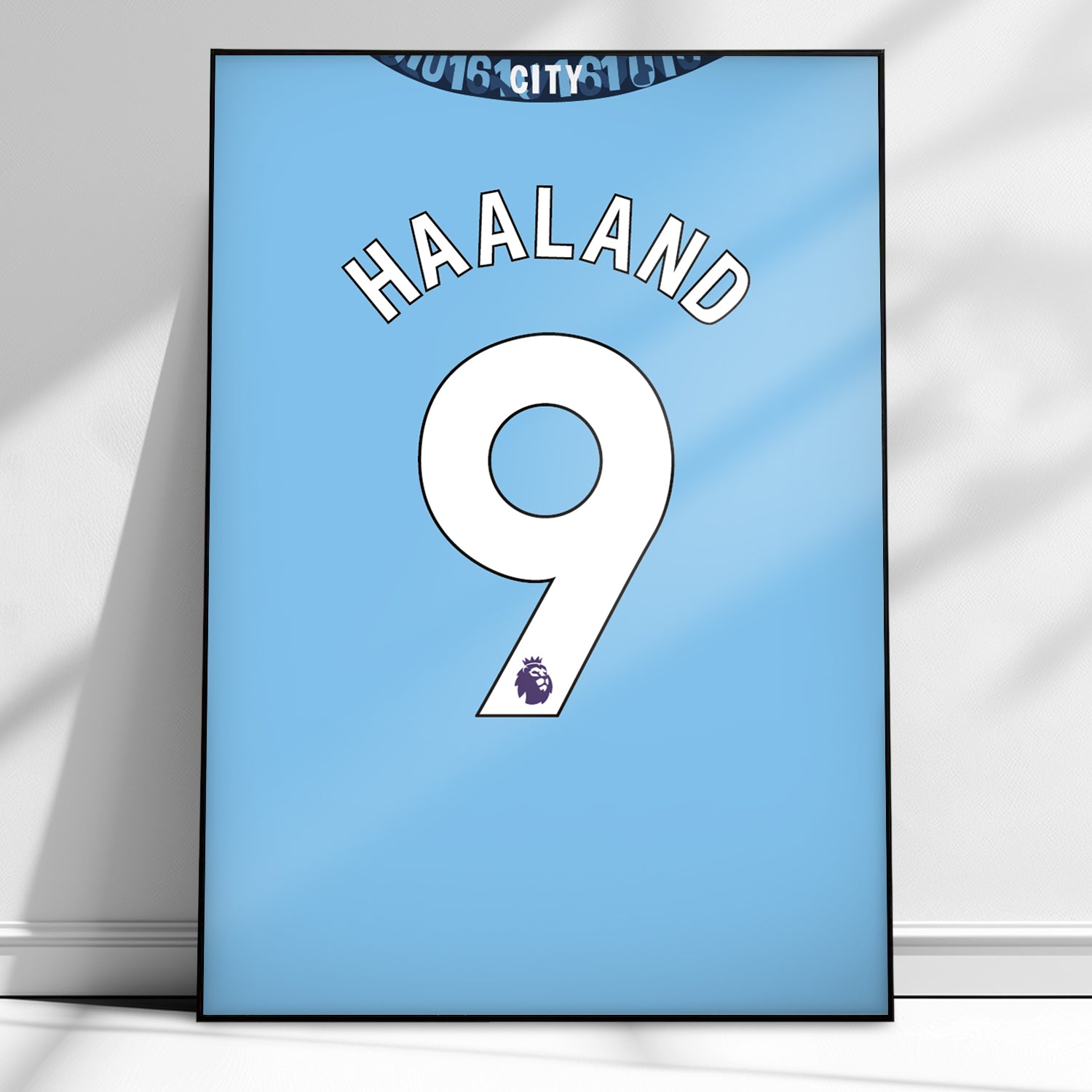 Plakat A3( 42x29,7cm) w czarnej ramce z NADRUKOWANYM autografem Erlinga Haaland nr 9 w domowej koszulce Manchesteru City sezon 2024/25 – elegancki dodatek dla fanów piłki nożnej. Stylowa grafika w czarno-zielonych barwach przedstawia numer zawodnika, jego nazwisko oraz autograf. Wysokiej jakości wydruk idealnie nadaje się na ścianę w pokoju kibica lub biurze. Idealny na prezent!