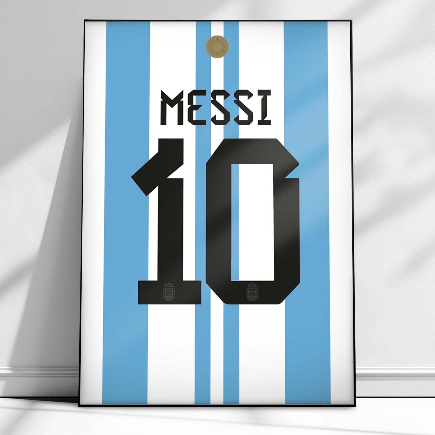 Plakat A3( 42x29,7cm) w czarnej ramce z NADRUKOWANYM autografem Leo Messiego nr 10 w koszulce reprezentacji Argentyny – elegancki dodatek dla fanów piłki nożnej. Stylowa grafika w czarno-zielonych barwach przedstawia numer zawodnika, jego nazwisko oraz autograf. Wysokiej jakości wydruk idealnie nadaje się na ścianę w pokoju kibica lub biurze. Idealny na prezent!