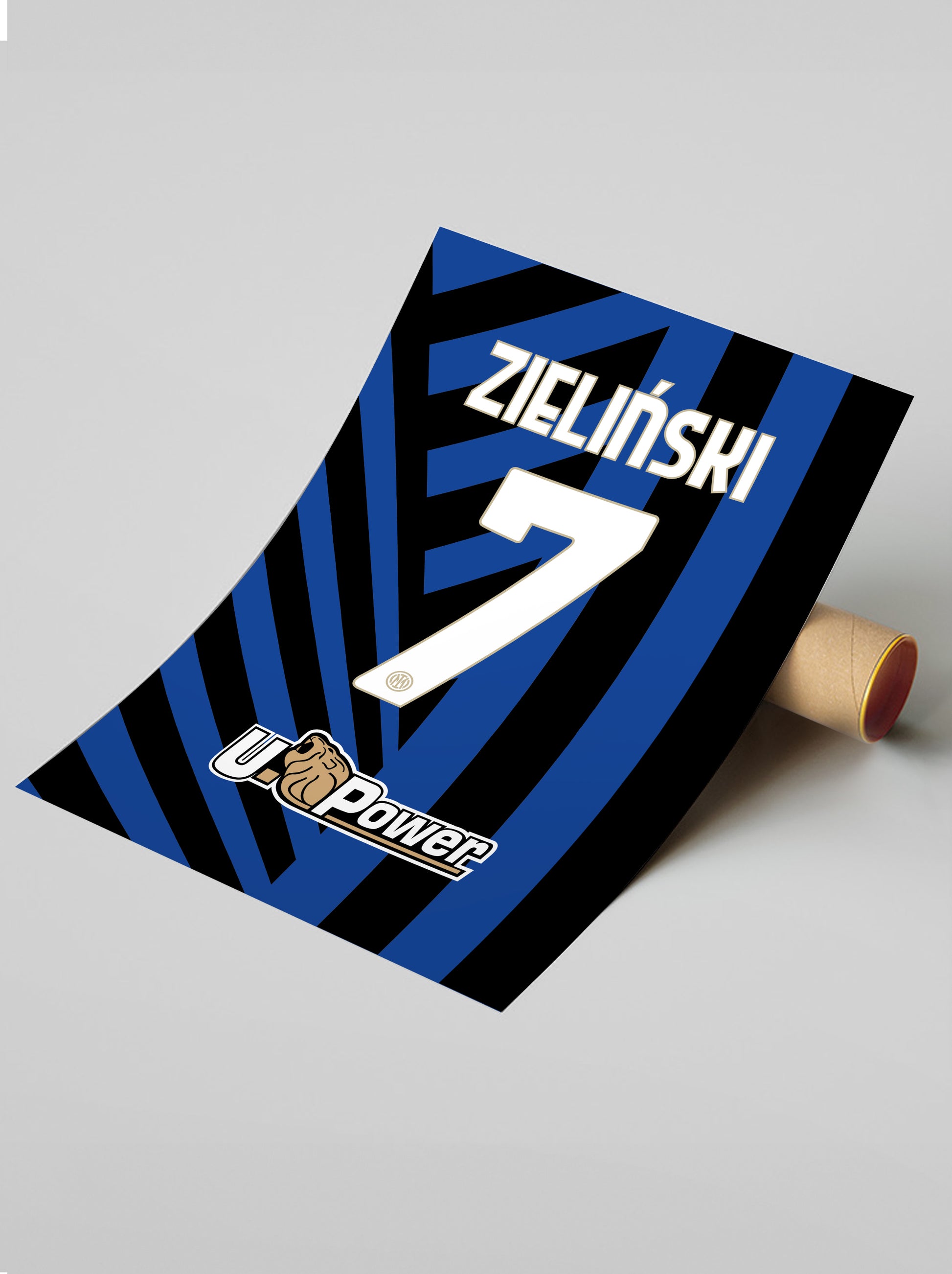 Plakat A3( 42x29,7cm) z NADRUKOWANYM autografem Piotr Zieliński nr 7 w domowej koszulce Interu Mediolan sezon 2024/25 – elegancki dodatek dla fanów piłki nożnej. Stylowa grafika w czarno-zielonych barwach przedstawia numer zawodnika, jego nazwisko oraz autograf. Wysokiej jakości wydruk idealnie nadaje się na ścianę w pokoju kibica lub biurze. Idealny na prezent!