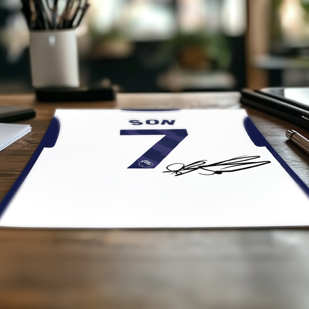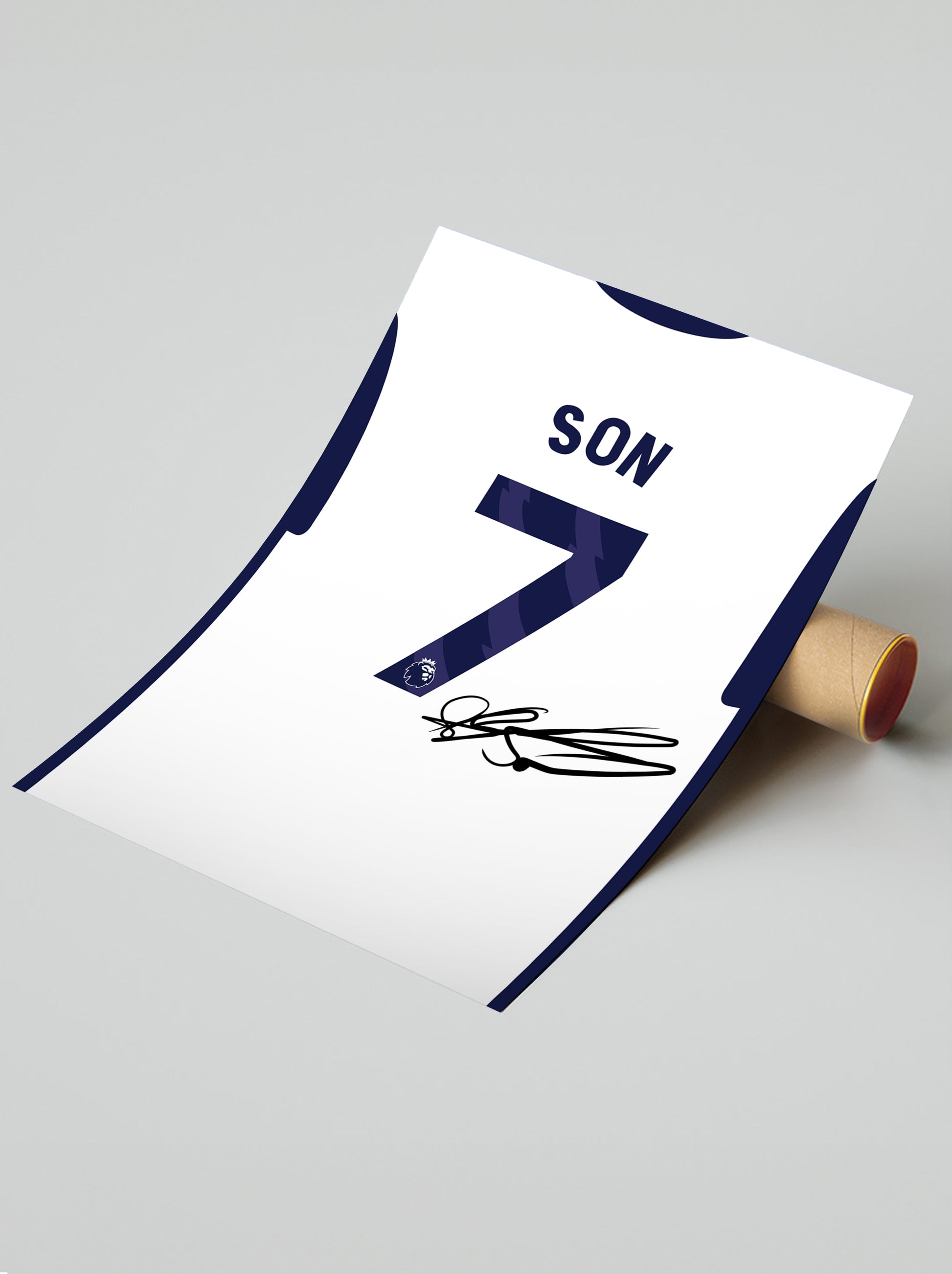 Plakat A3 (42x29,7cm) z NADRUKOWANYM autografem Sona nr 7 w domowej koszulce Tottenhamu sezon 2024/25 – elegancki dodatek dla fanów piłki nożnej. Plakat wykonany z dbałością o detale, drukowany na wytrzymałym sztywnym papierze 300g odpornym na drobne zagniecenia. Idealny pomysł na prezent na urodziny, święta czy dzień dziecka. Idealny prezent zarówno dla młodego fana, jak i wieloletniego kibica.